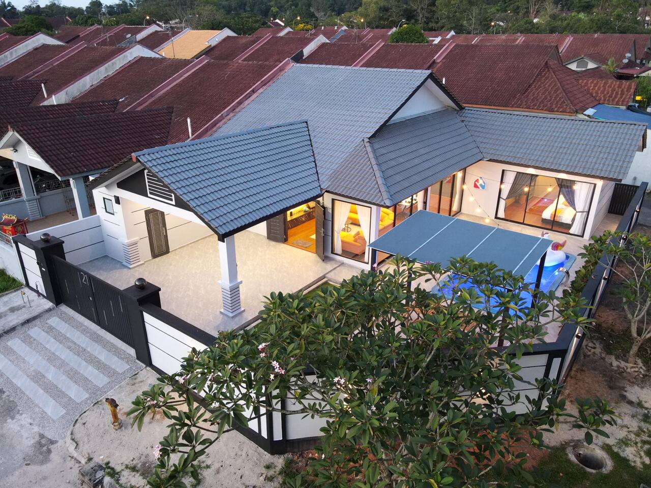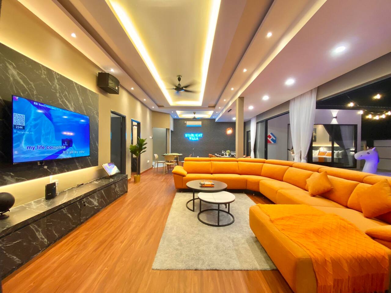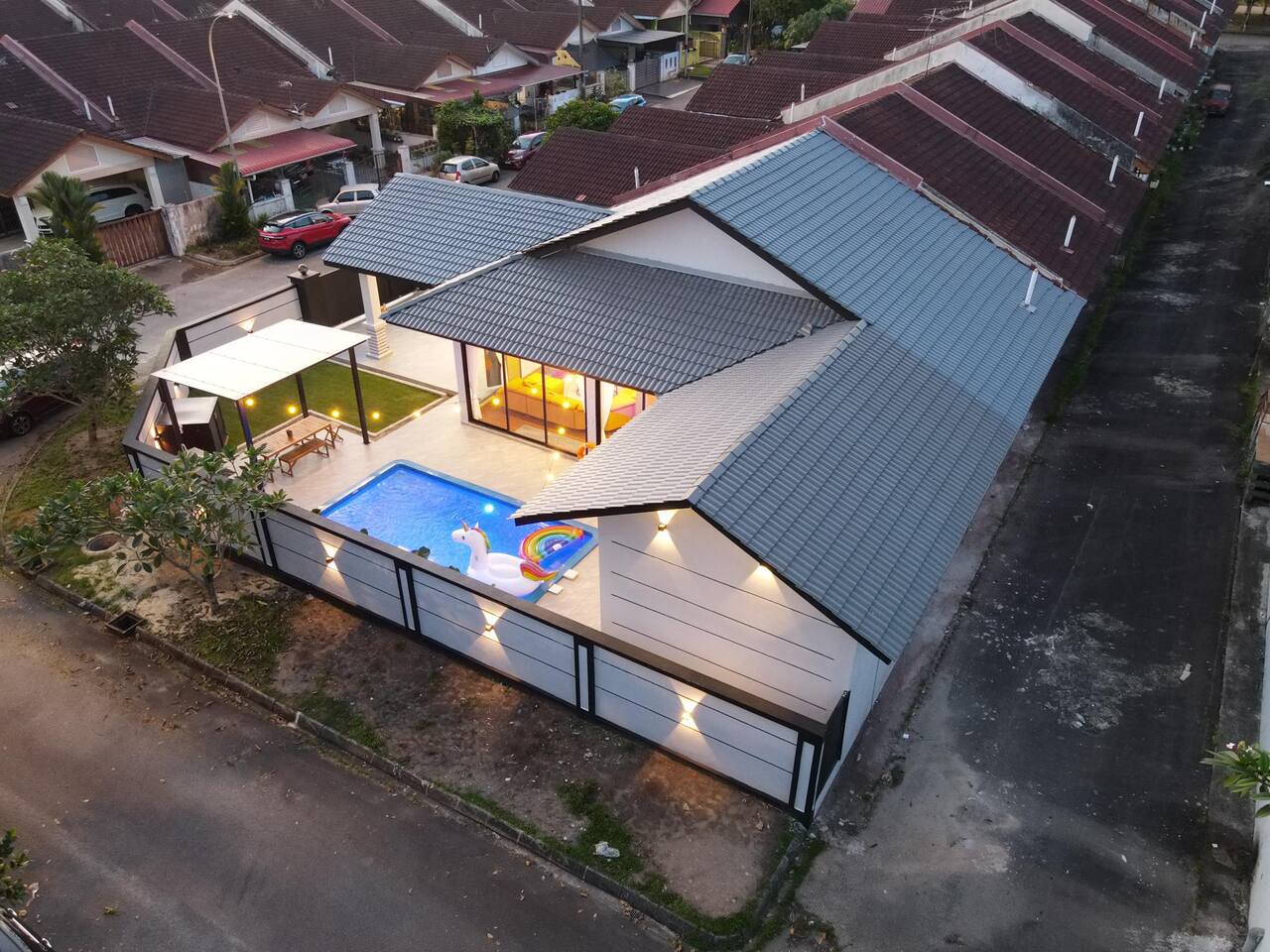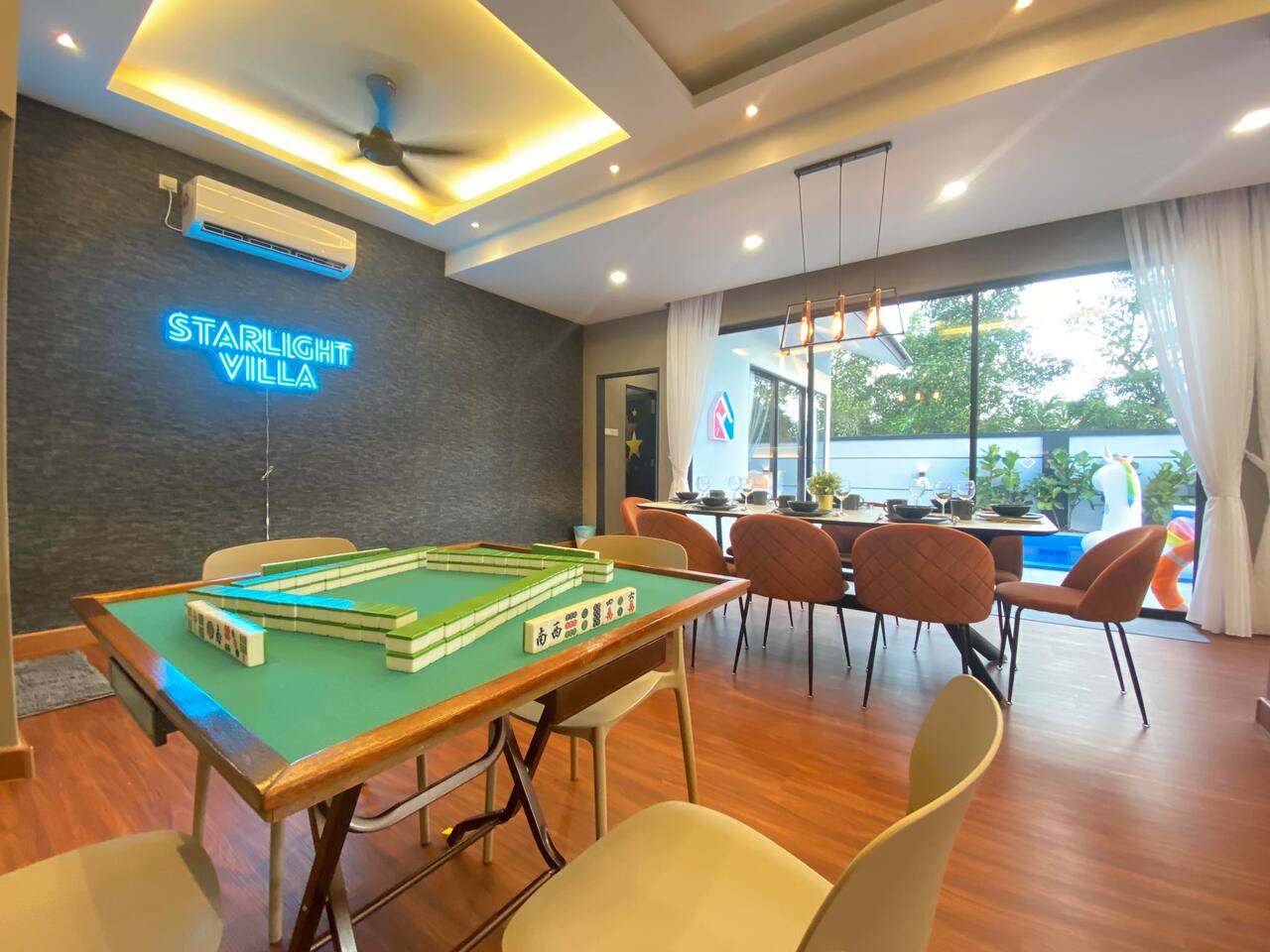 🏡 Single storey corner house (3600 Sqft) 🛏️ 4 Bedrooms 🛁 3 Bathrooms 👫 Accommodate 6-12 pax 🅿️ 2 Car parkings inside, 3-5 parkings outside 🛏️ Bedroom Configuration: 1️⃣ Bedroom 1: 1 x King Bed (Ensuite Bathroom) 2️⃣ Bedroom 2: 2 x Queen Beds (Ensuite bathroom) 3️⃣ Bedroom 3: 2 x Queen Beds 4️⃣ Bedroom 4: 1 x Queen Bed 🎯 Entertainment: 🏊 Private pool 🎤 Karaoke system 🀄️ Mahjong table with tiles 🥅 Football ⚽️ Table soccer 🏒 Table hockey 🍢 Bbq pit 🪑 Outdoor dining 📺 Free Netflix 🎬 Free Disney+ 🛜 300mbps WiFi 🍽️ Fully equipped kitchen: 💧Coway hot & cold water purifier ❄️ Fridge 🍲 Microwave 🍳 Pot & pan 🫖 Kettle ✅ Extra touches included: 🧺 2in1 Washing machine & dryer 🛀 Fresh towel & toiletries 🛏️ Clean bed linens 📍Nearby attraction: 🍱 Mount Austin Nanyang Street - 1 min 🛍️ Jaya Grocer Mount Austin - 1 min 🛋️ Aeon Tebrau - 5 mins 🏰 Eco Palladium - 5 mins 🛒 Mid Valley Southkey - 10 mins 🚆 City Square & CIQ - 15 mins 🛍️ KSL City Mall - 15 mins 👗 Johor Premium Outlet - 30 mins 🏄🏻♂️ Legoland Medini - 40 mins 📝 House Rules: 🕒 Check-in: 3pm | Check-out: 12pm 🤫 Respect the neighbour hoods quiet hours ⚠️ Parties/events/more than 12pax must get approval from host 🙋🏻Your host🙋🏻♀️ Bryce & Miki, your friendly local hosts, speaks Chinese, English and Malay. We ensure smooth communication and a heartfelt welcome for every guest.❤️ 🤩 Why Choose Starlight Villa? 🧑🧑🧒🧒 Family-Friendly – All rooms on the ground floor, perfect for kids & elderly 🏊♂️ Poolside Living – Living room opens to the pool for fun & safety 🧹 Spotless Clean – Maintained by well-trained cleaners 🕛 12 PM Checkout – More time to relax (others only 11 AM) 🚗 Easy Parking – Spacious & convenient for multiple cars 📍 Great Location – Close to top attractions & essentials