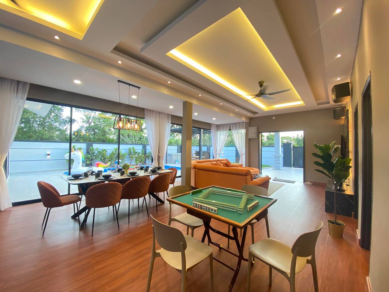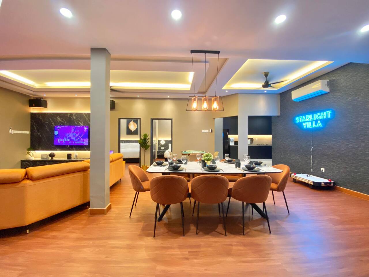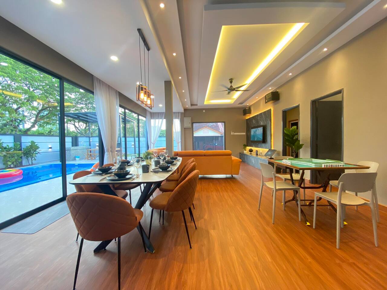 🏡 Single storey corner house (3600 Sqft) 🛏️ 4 Bedrooms 🛁 3 Bathrooms 👫 Accommodate 6-12 pax 🅿️ 2 Car parkings inside, 3-5 parkings outside 🛏️ Bedroom Configuration: 1️⃣ Bedroom 1: 1 x King Bed (Ensuite Bathroom) 2️⃣ Bedroom 2: 2 x Queen Beds (Ensuite bathroom) 3️⃣ Bedroom 3: 2 x Queen Beds 4️⃣ Bedroom 4: 1 x Queen Bed 🎯 Entertainment: 🏊 Private pool 🎤 Karaoke system 🀄️ Mahjong table with tiles 🥅 Football ⚽️ Table soccer 🏒 Table hockey 🍢 Bbq pit 🪑 Outdoor dining 📺 Free Netflix 🎬 Free Disney+ 🛜 300mbps WiFi 🍽️ Fully equipped kitchen: 💧Coway hot & cold water purifier ❄️ Fridge 🍲 Microwave 🍳 Pot & pan 🫖 Kettle ✅ Extra touches included: 🧺 2in1 Washing machine & dryer 🛀 Fresh towel & toiletries 🛏️ Clean bed linens 📍Nearby attraction: 🍱 Mount Austin Nanyang Street - 1 min 🛍️ Jaya Grocer Mount Austin - 1 min 🛋️ Aeon Tebrau - 5 mins 🏰 Eco Palladium - 5 mins 🛒 Mid Valley Southkey - 10 mins 🚆 City Square & CIQ - 15 mins 🛍️ KSL City Mall - 15 mins 👗 Johor Premium Outlet - 30 mins 🏄🏻♂️ Legoland Medini - 40 mins 📝 House Rules: 🕒 Check-in: 3pm | Check-out: 12pm 🤫 Respect the neighbour hoods quiet hours ⚠️ Parties/events/more than 12pax must get approval from host 🙋🏻Your host🙋🏻♀️ Bryce & Miki, your friendly local hosts, speaks Chinese, English and Malay. We ensure smooth communication and a heartfelt welcome for every guest.❤️ 🤩 Why Choose Starlight Villa? 🧑🧑🧒🧒 Family-Friendly – All rooms on the ground floor, perfect for kids & elderly 🏊♂️ Poolside Living – Living room opens to the pool for fun & safety 🧹 Spotless Clean – Maintained by well-trained cleaners 🕛 12 PM Checkout – More time to relax (others only 11 AM) 🚗 Easy Parking – Spacious & convenient for multiple cars 📍 Great Location – Close to top attractions & essentials