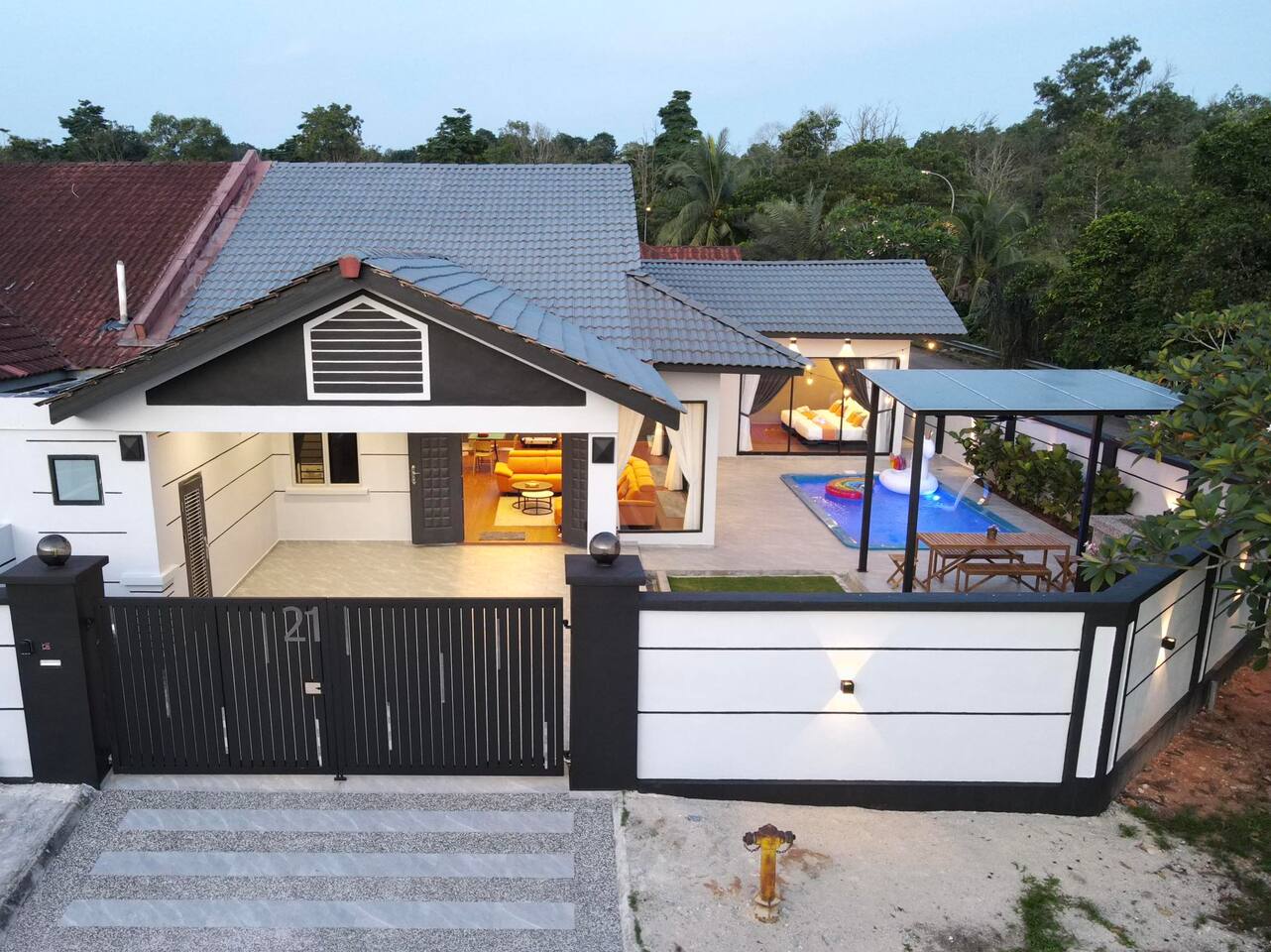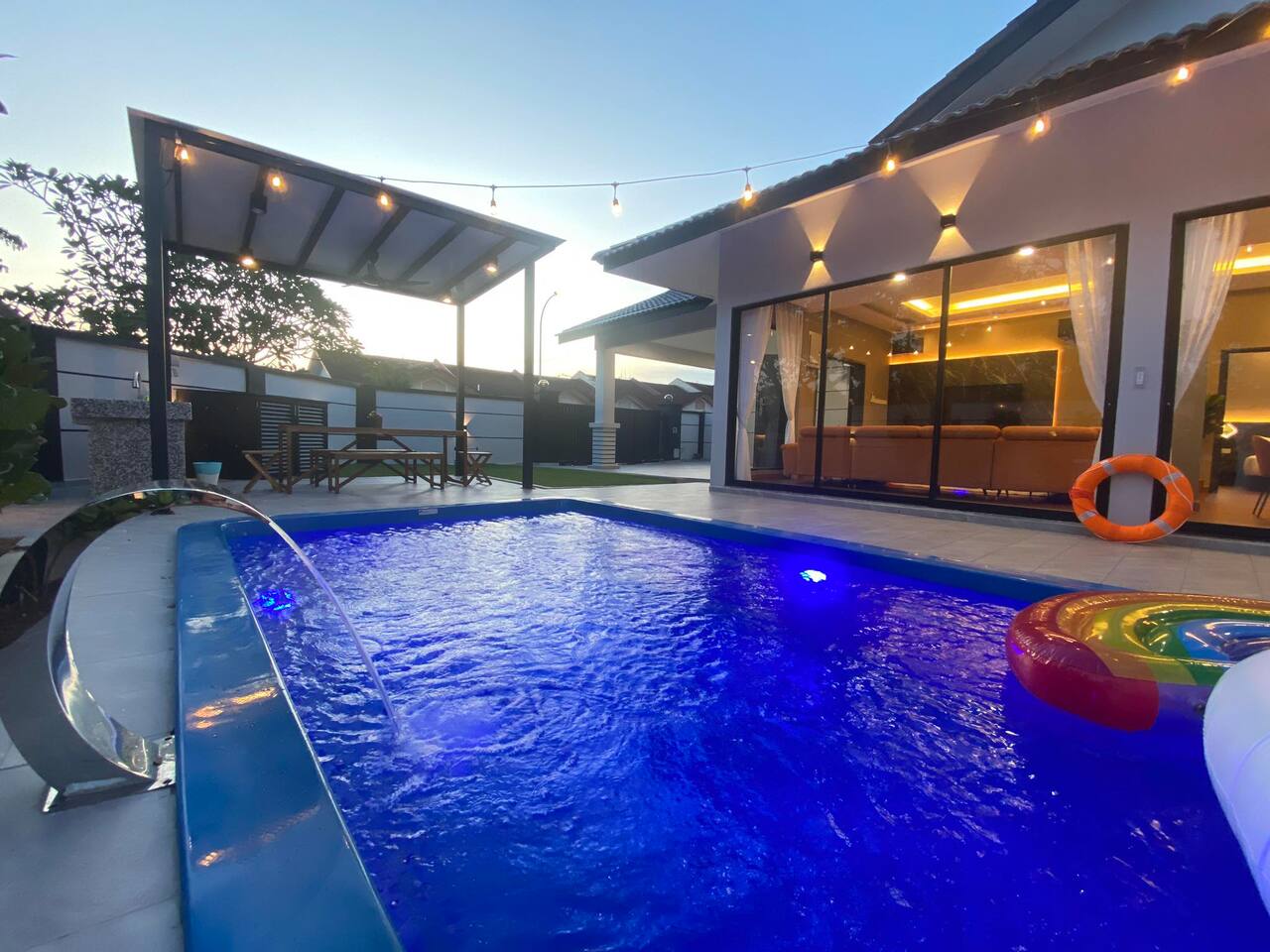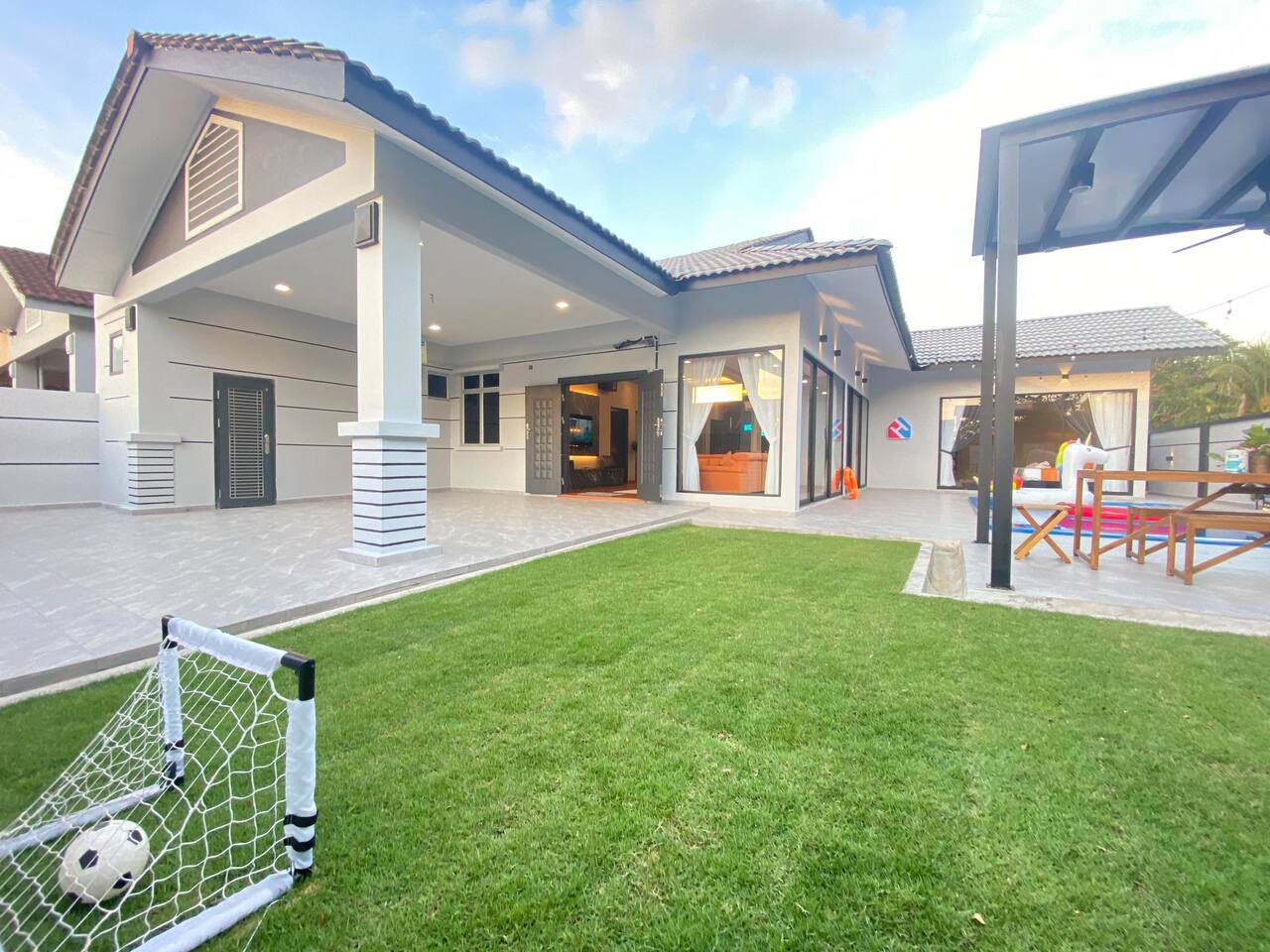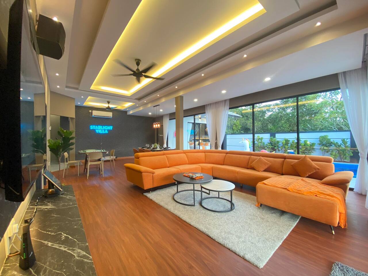 🏡 Single storey corner house (3600 Sqft) 🛏️ 4 Bedrooms 🛁 3 Bathrooms 👫 Accommodate 6-12 pax 🅿️ 2 Car parkings inside, 3-5 parkings outside 🛏️ Bedroom Configuration: 1️⃣ Bedroom 1: 1 x King Bed (Ensuite Bathroom) 2️⃣ Bedroom 2: 2 x Queen Beds (Ensuite bathroom) 3️⃣ Bedroom 3: 2 x Queen Beds 4️⃣ Bedroom 4: 1 x Queen Bed 🎯 Entertainment: 🏊 Private pool 🎤 Karaoke system 🀄️ Mahjong table with tiles 🥅 Football ⚽️ Table soccer 🏒 Table hockey 🍢 Bbq pit 🪑 Outdoor dining 📺 Free Netflix 🎬 Free Disney+ 🛜 300mbps WiFi 🍽️ Fully equipped kitchen: 💧Coway hot & cold water purifier ❄️ Fridge 🍲 Microwave 🍳 Pot & pan 🫖 Kettle ✅ Extra touches included: 🧺 2in1 Washing machine & dryer 🛀 Fresh towel & toiletries 🛏️ Clean bed linens 📍Nearby attraction: 🍱 Mount Austin Nanyang Street - 1 min 🛍️ Jaya Grocer Mount Austin - 1 min 🛋️ Aeon Tebrau - 5 mins 🏰 Eco Palladium - 5 mins 🛒 Mid Valley Southkey - 10 mins 🚆 City Square & CIQ - 15 mins 🛍️ KSL City Mall - 15 mins 👗 Johor Premium Outlet - 30 mins 🏄🏻♂️ Legoland Medini - 40 mins 📝 House Rules: 🕒 Check-in: 3pm | Check-out: 12pm 🤫 Respect the neighbour hoods quiet hours ⚠️ Parties/events/more than 12pax must get approval from host 🙋🏻Your host🙋🏻♀️ Bryce & Miki, your friendly local hosts, speaks Chinese, English and Malay. We ensure smooth communication and a heartfelt welcome for every guest.❤️ 🤩 Why Choose Starlight Villa? 🧑🧑🧒🧒 Family-Friendly – All rooms on the ground floor, perfect for kids & elderly 🏊♂️ Poolside Living – Living room opens to the pool for fun & safety 🧹 Spotless Clean – Maintained by well-trained cleaners 🕛 12 PM Checkout – More time to relax (others only 11 AM) 🚗 Easy Parking – Spacious & convenient for multiple cars 📍 Great Location – Close to top attractions & essentials